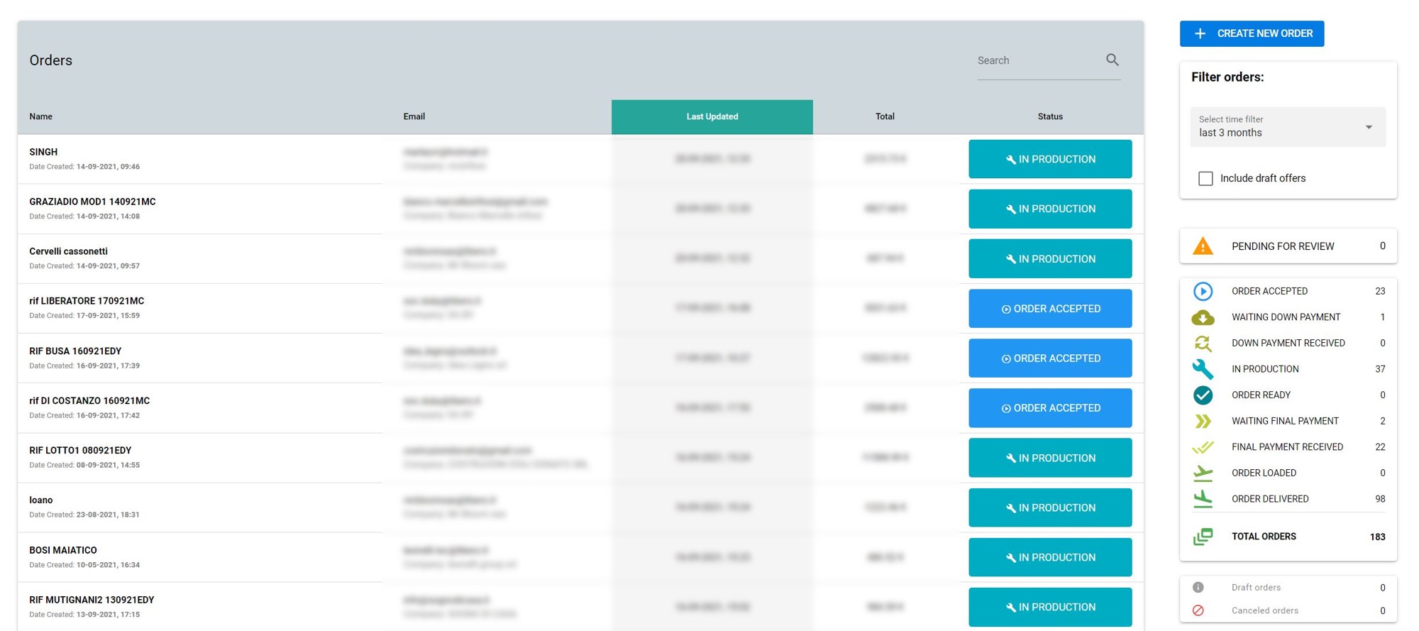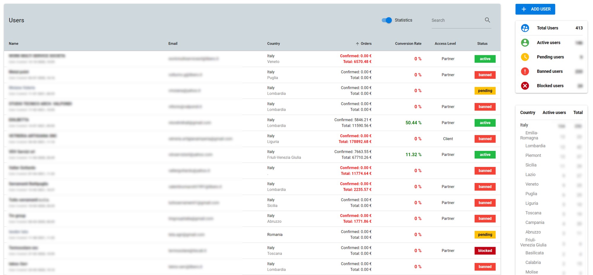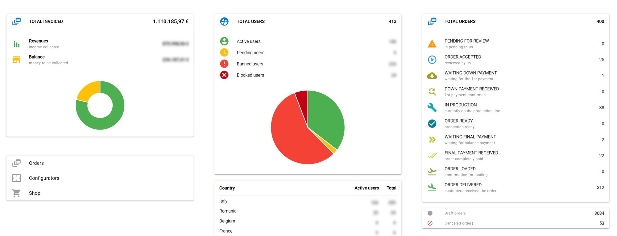- get a full overview about your company statistics of orders, income or users
