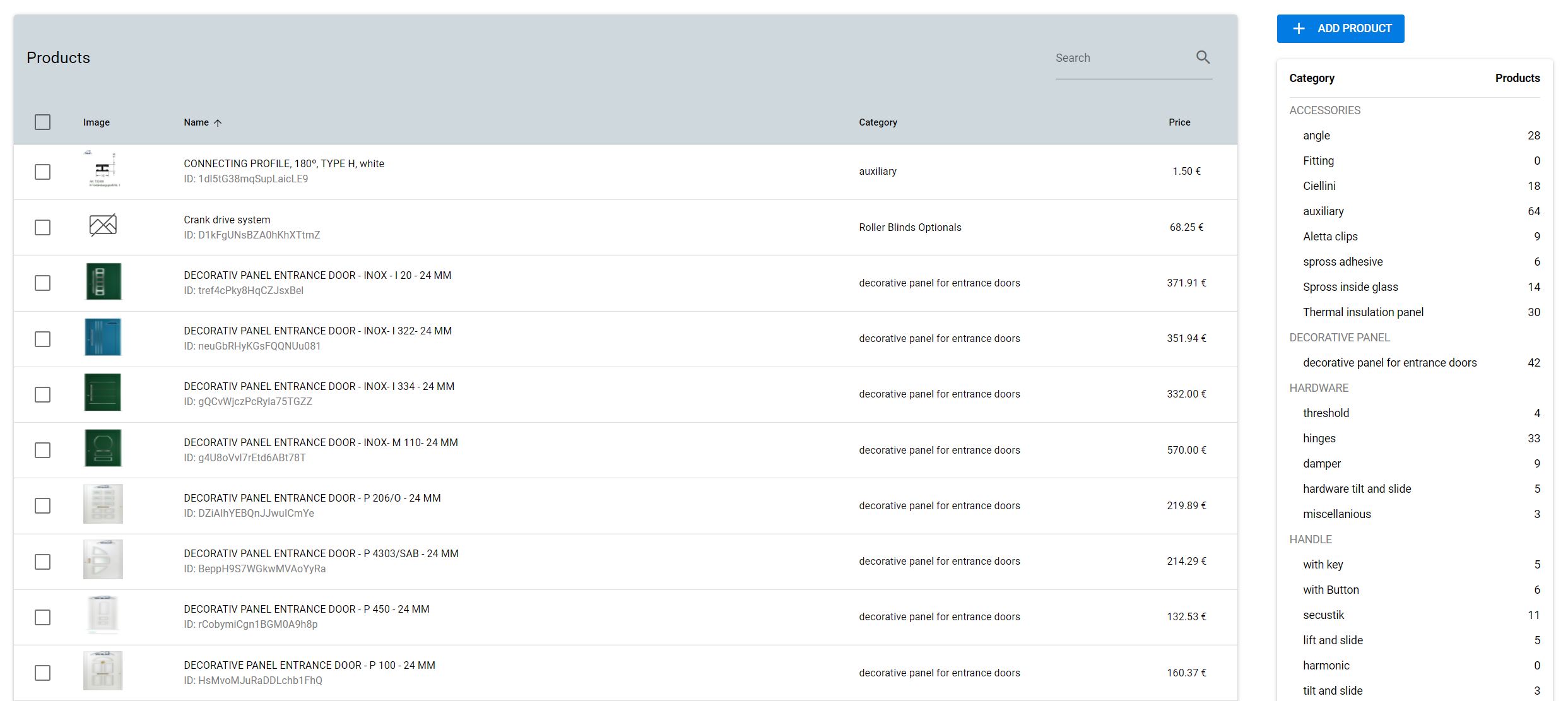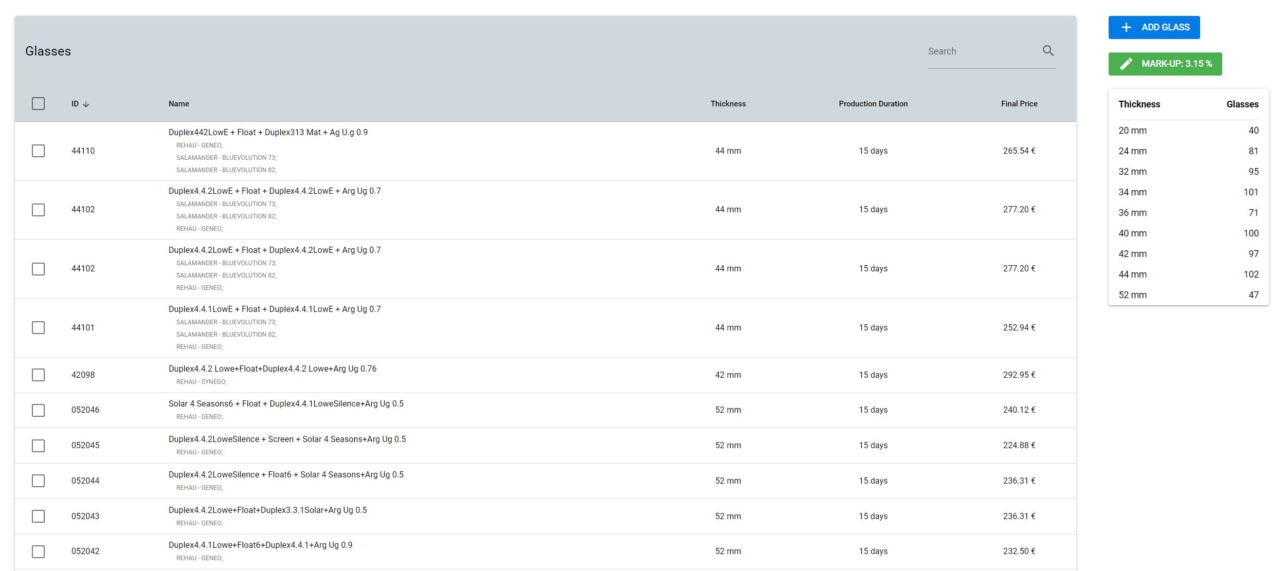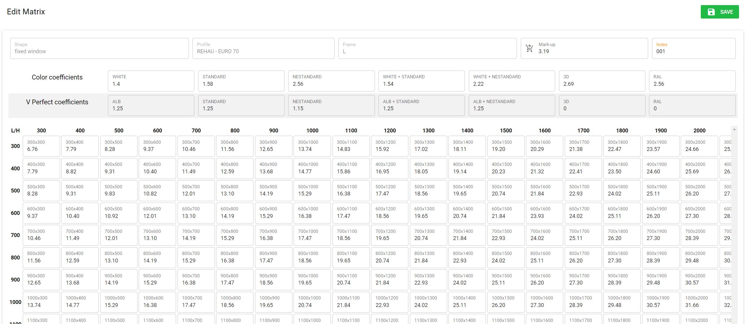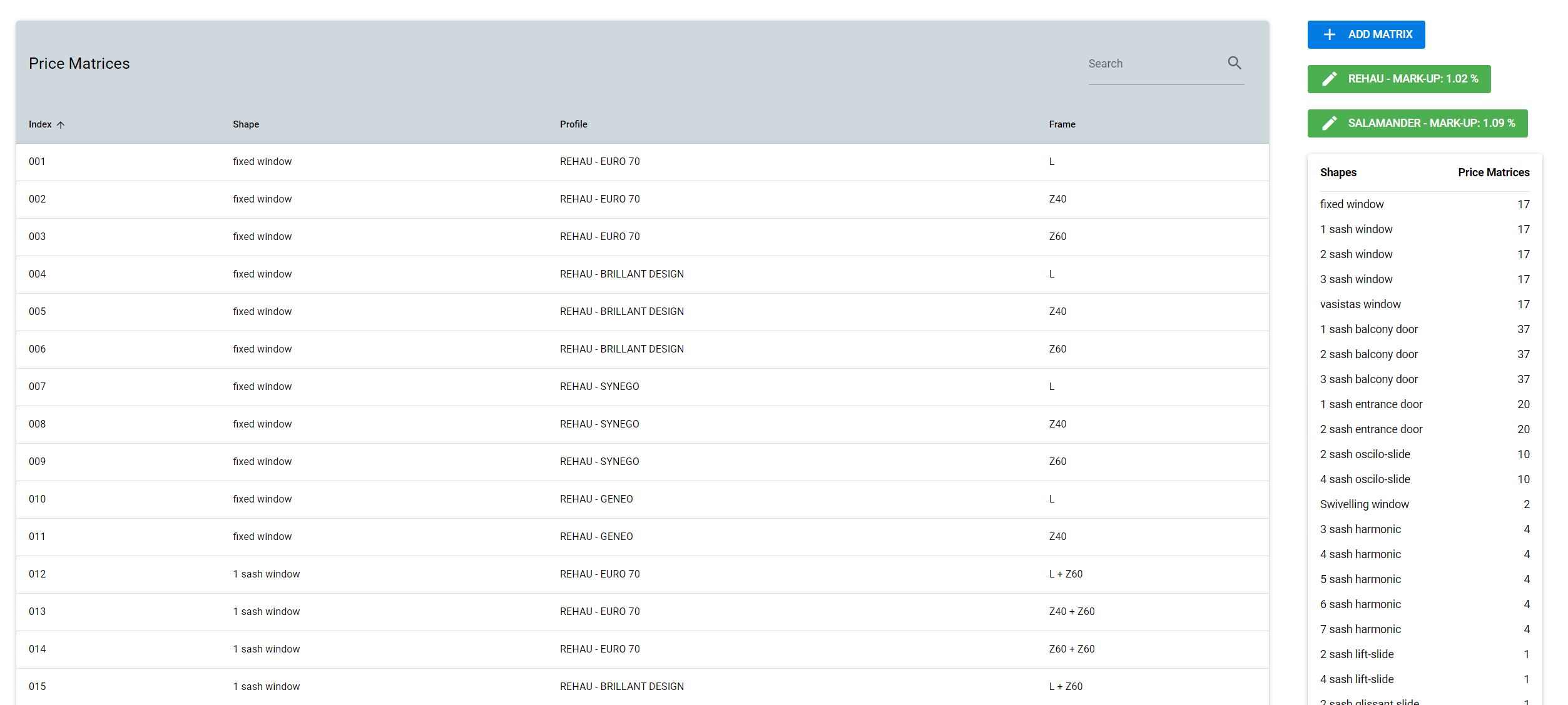 - Manage the settings of its profiles, frames, materials, colors, even accessories
